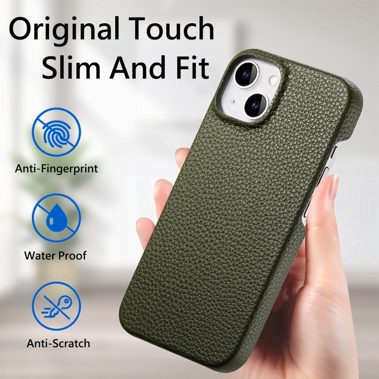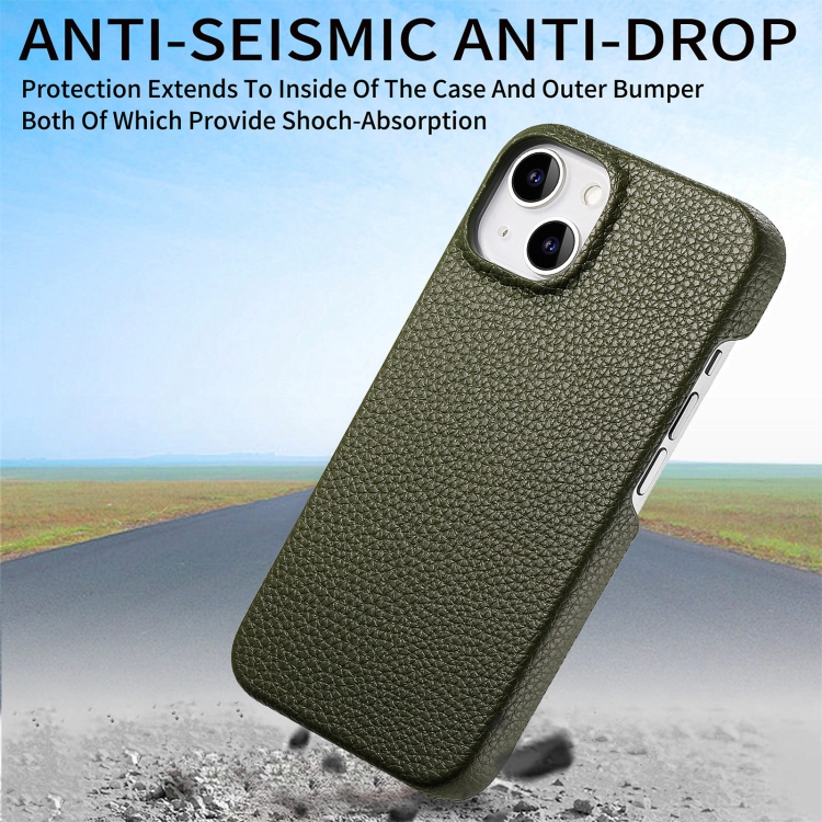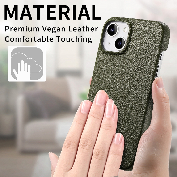 Funda para Teléfono iPhone 15 Parte Trasera Cuero Litchi Oil Edge (Verde)