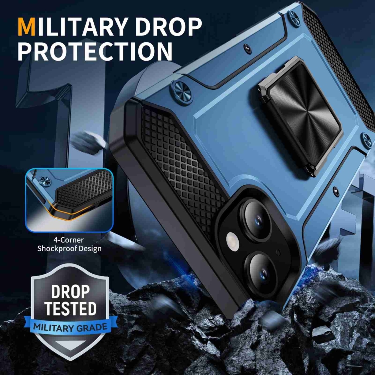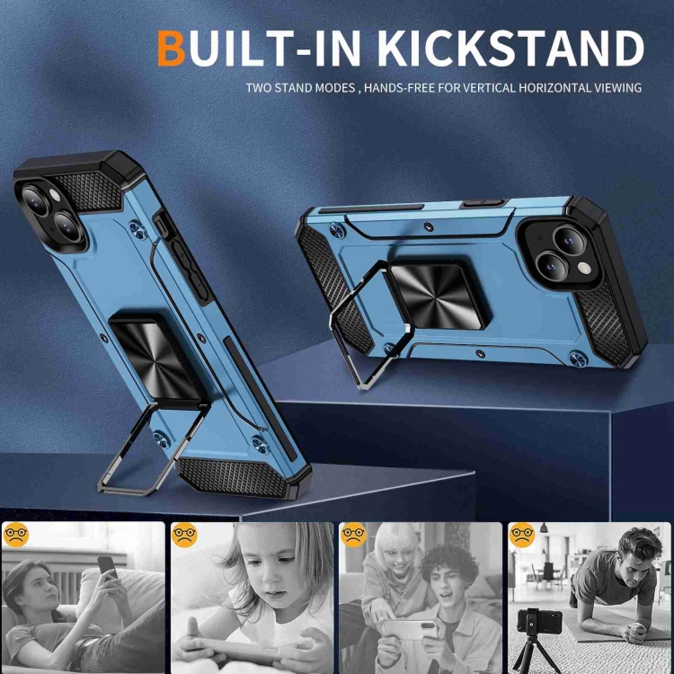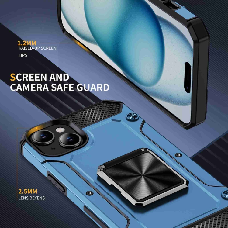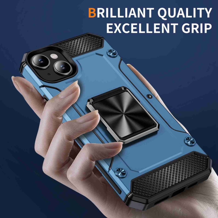 Funda para Teléfono iPhone 15 con Soporte de Metal a Prueba de Golpes (Azul Marino)