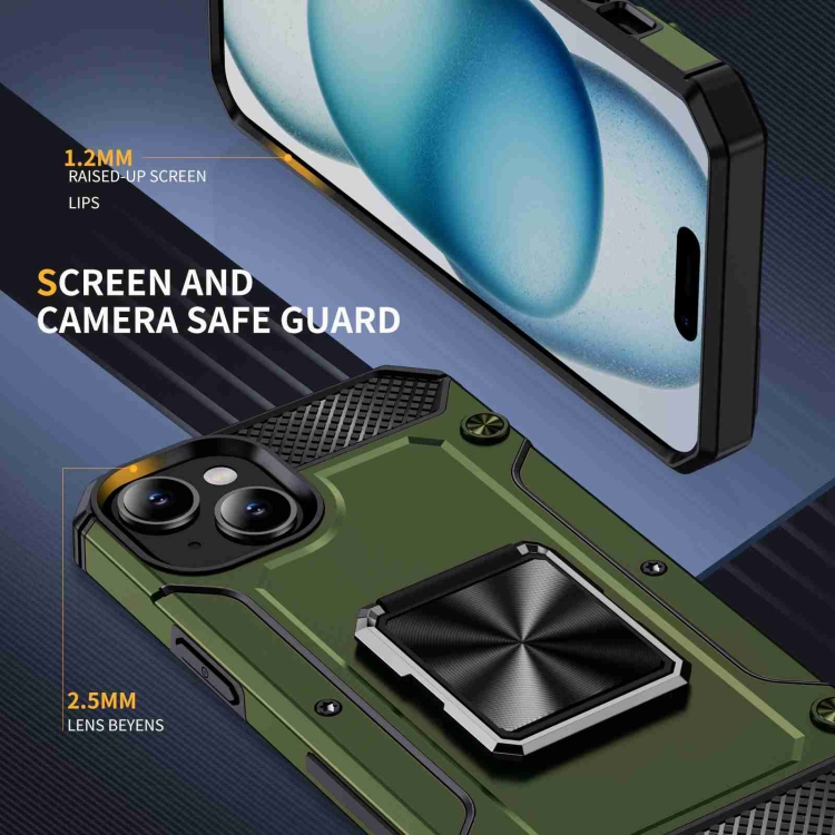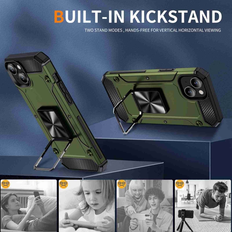 Funda para Teléfono iPhone 15 con Soporte de Metal a Prueba de Golpes (Verde Oliva)