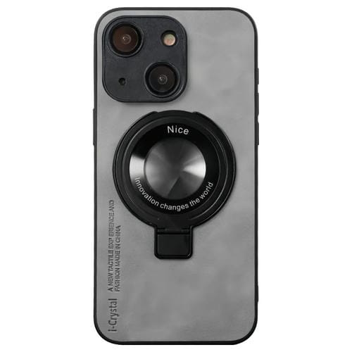 Funda para Teléfono iPhone 15 I.Crystal con Soporte Fulcrum de Piel de Cordero (Gris Claro)