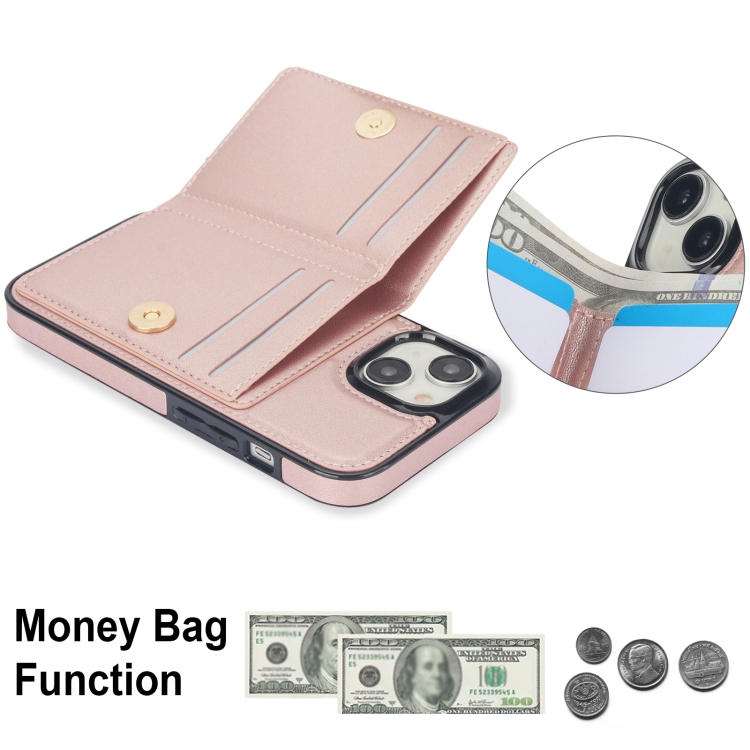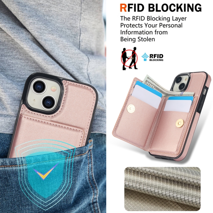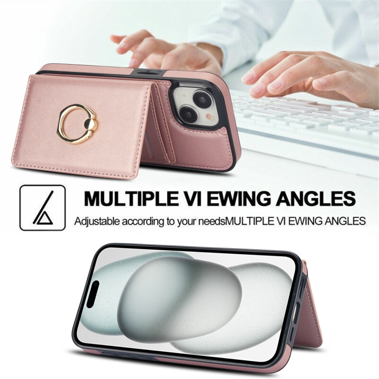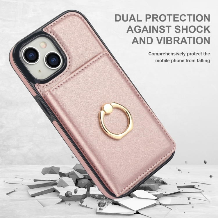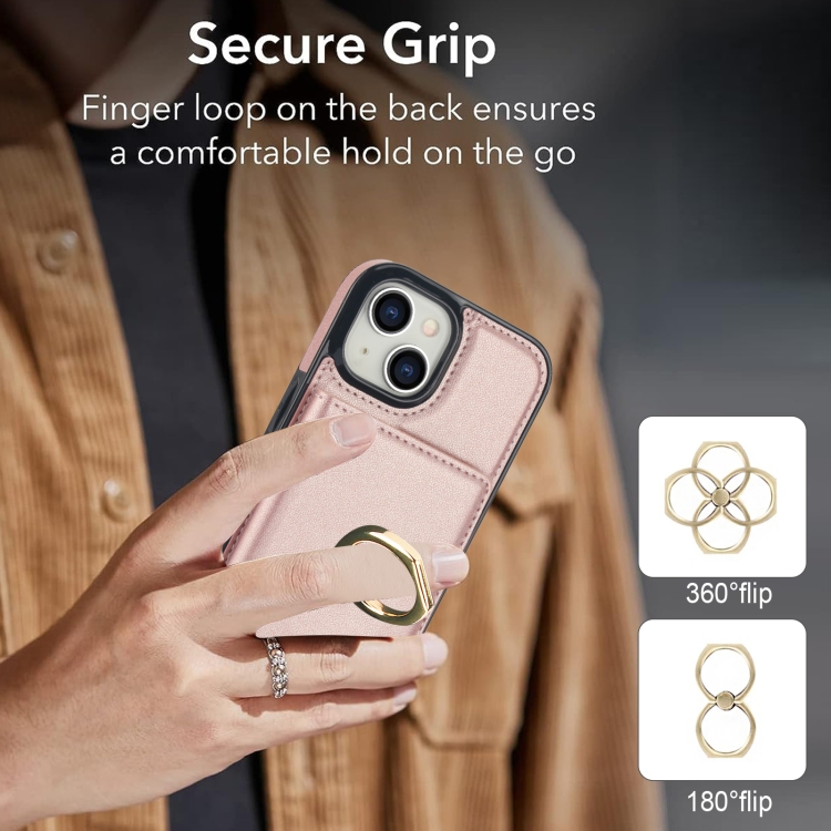 Funda para Teléfono iPhone 15 con Soporte para Anillo y Tarjeta Antirrobo Rfid (Oro Rosa)