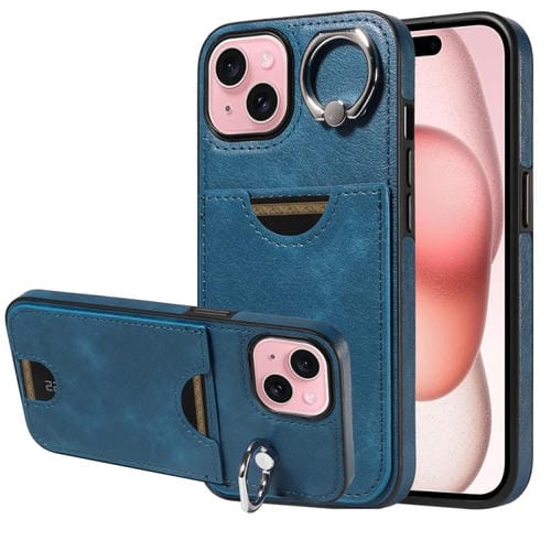 Funda para Teléfono iPhone 15 con Soporte para Anillo y Ranura para Tarjeta (Azul)