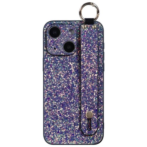 Funda para teléfono iPhone 15 con soporte para pulsera Flash Diamond (Verde Flash)