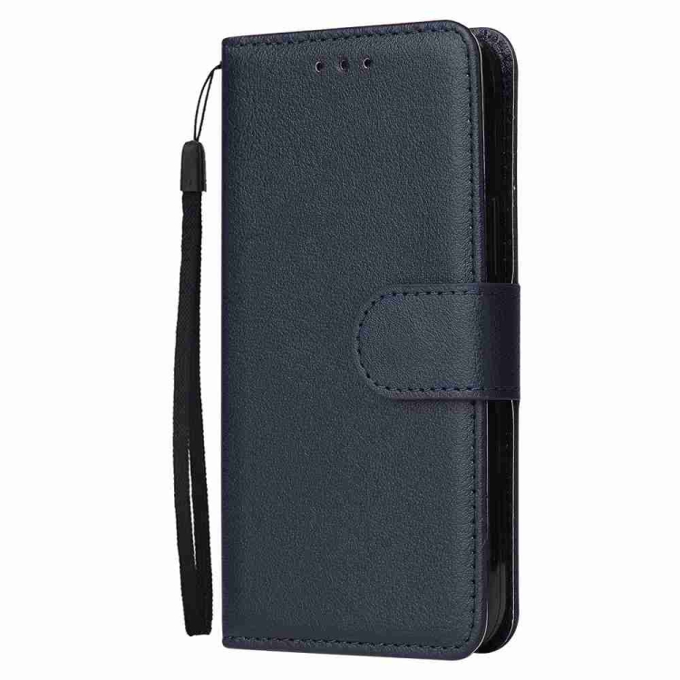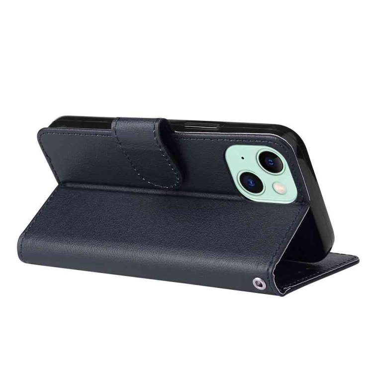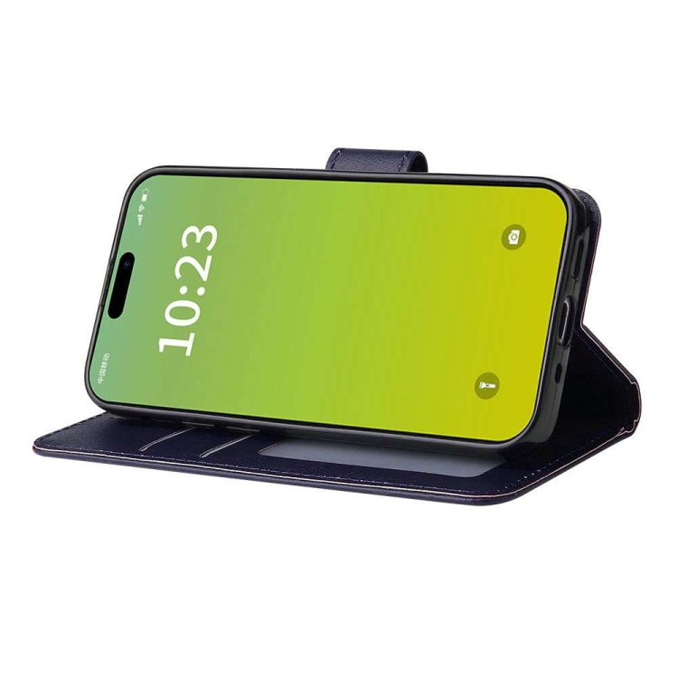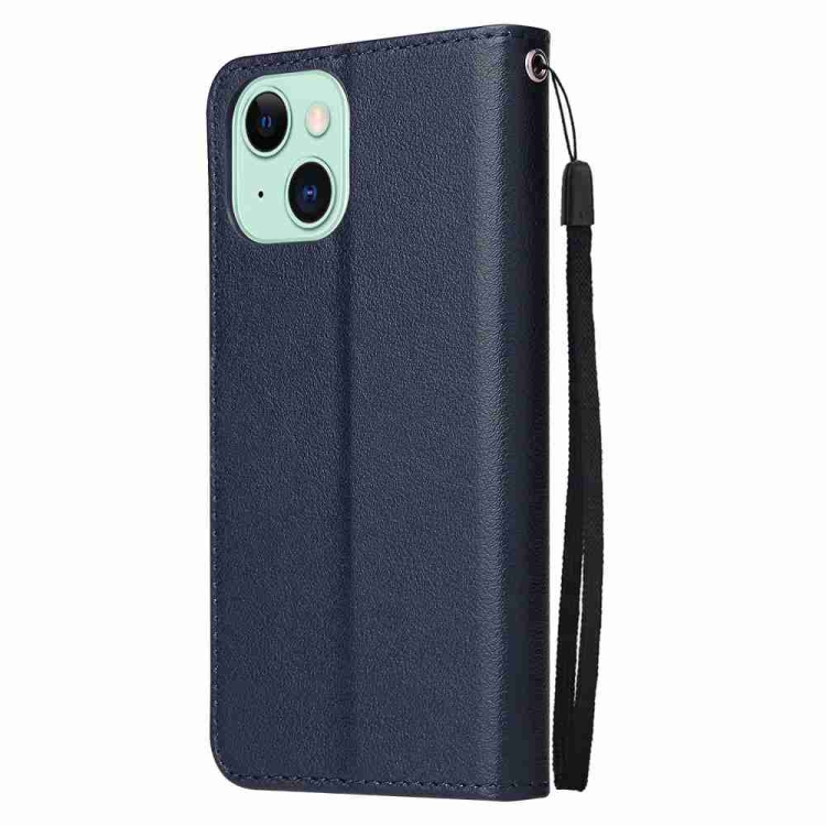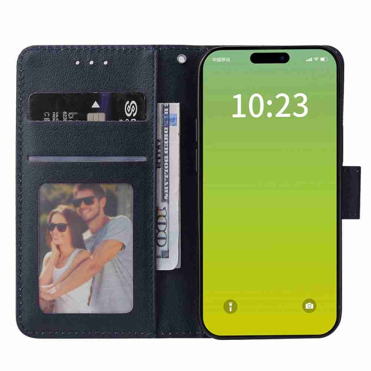 Funda para Teléfono iPhone 15 Cuero Tapa Horizontal Multifuncional Tres Ranuras (Azul)