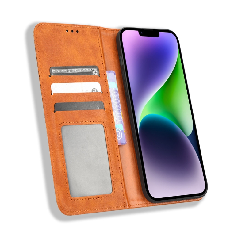 Funda para Teléfono iPhone 15 Cuero Textura Retro Hebilla Magnética (Marrón)
