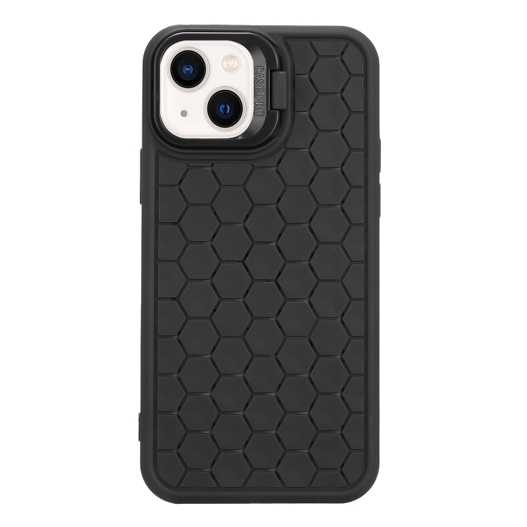 Funda para Teléfono TPU para iPhone 15 con Soporte para Lente Radiante de Panal (Negro)