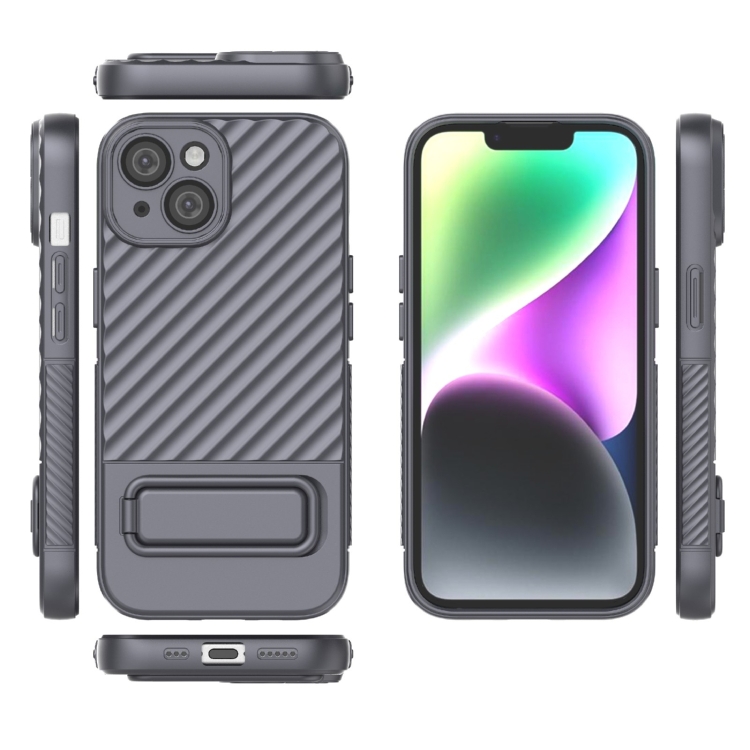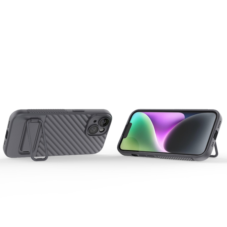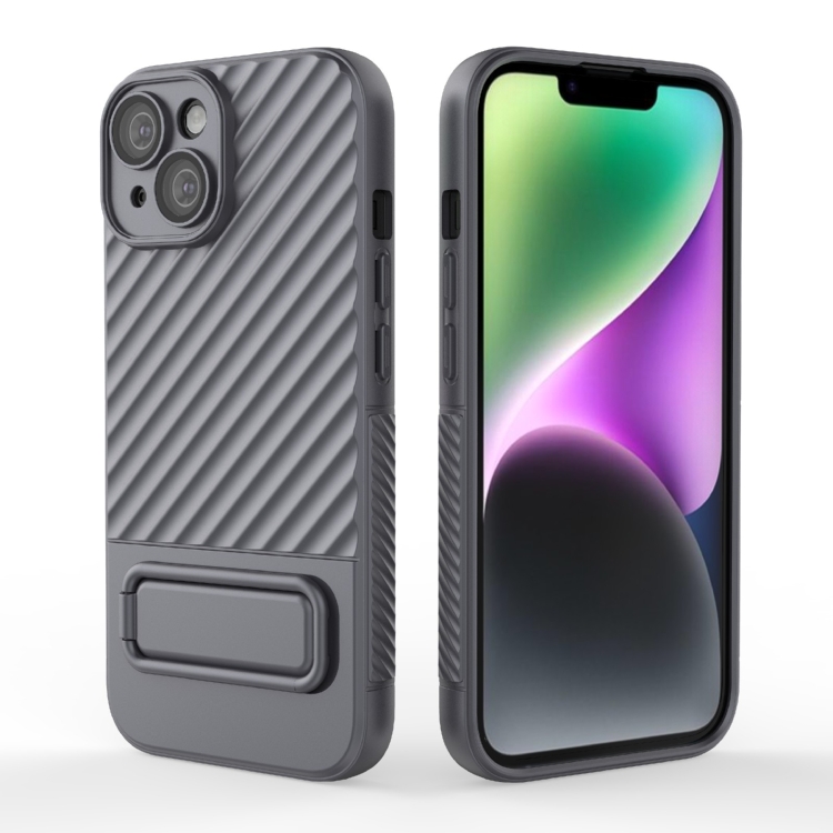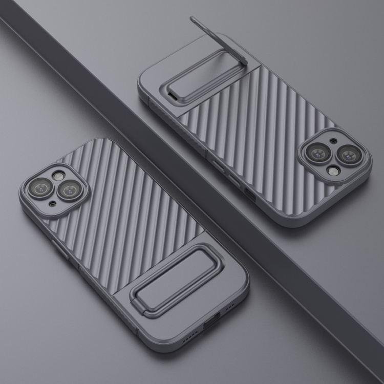Funda para Teléfono TPU para iPhone 15 con Textura Ondulada y Película para Lentes (Gris)