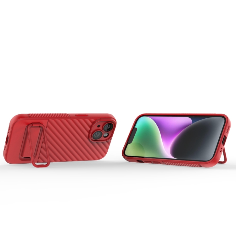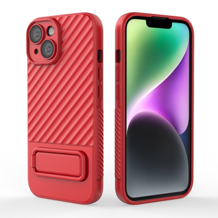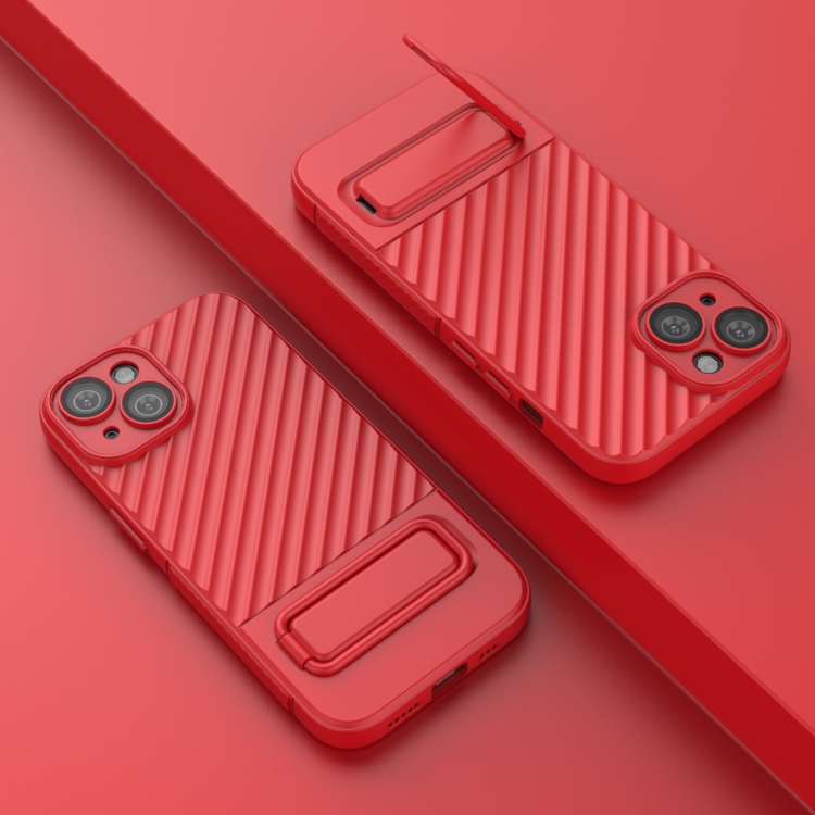 Funda para Teléfono TPU iPhone 15 Textura Ondulada Película para Lentes (Rojo)