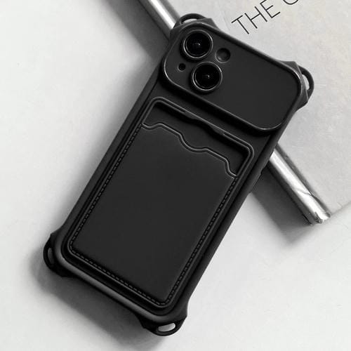 Funda para Teléfono TPU Esmerilado con Ranura para Tarjeta para iPhone 15 (Negro)