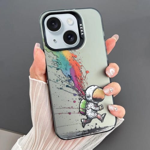 Funda para Teléfono iPhone 15 Imd Animal Graffiti TPU + PC de Doble Cara (Astronautas Corriendo)