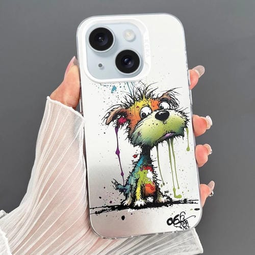 Funda para Teléfono iPhone 15 Imd Animal Graffiti TPU y PC Doble Cara (Perro Naranja Verde)