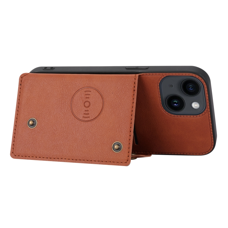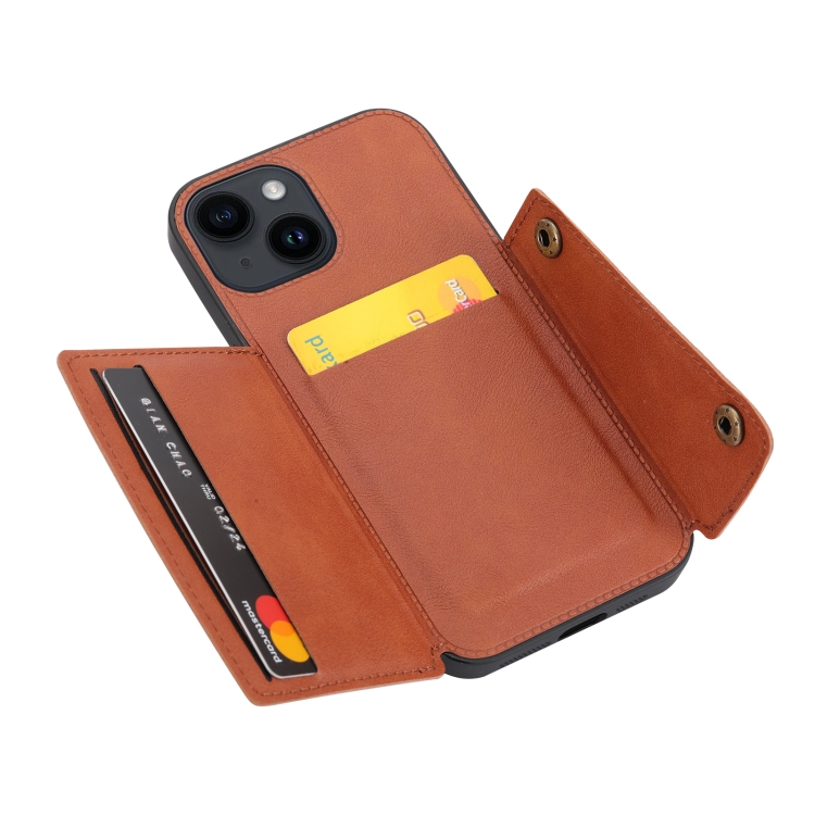 Funda para Teléfono iPhone 15 Pu + TPU con Ranuras para Tarjetas y Doble Hebilla (Marrón)