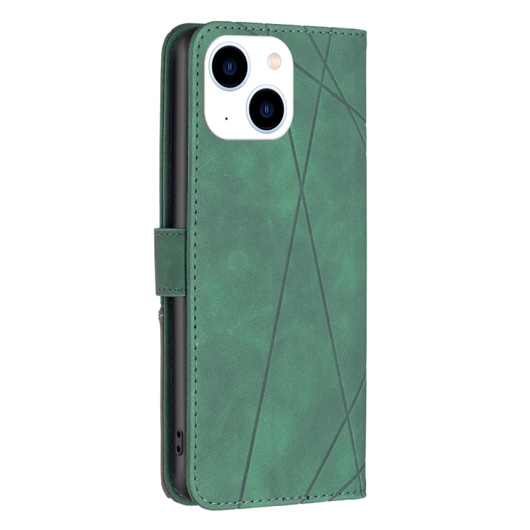 Funda para Teléfono iPhone 15 Hebilla Magnética Rombo Textura Cuero (Verde)