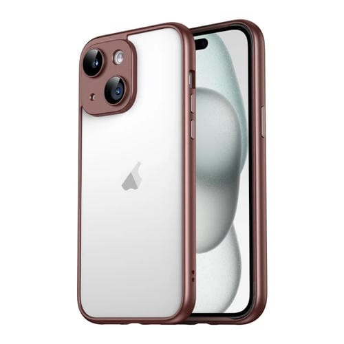 Marco de Borde Puro PC para iPhone 15 Macaron con Película de Vidrio para Lentes (Marrón)