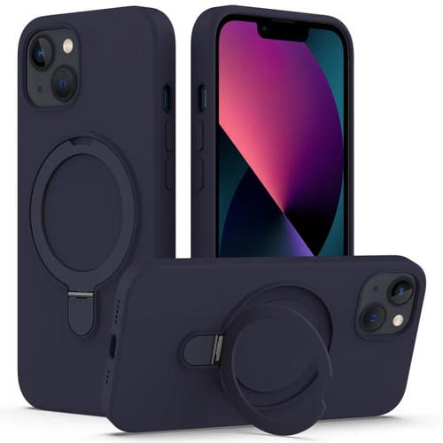 Funda para Teléfono iPhone 15 Magsafe Silicona Líquida Magnética con Soporte para Anillo (Azul Medianoche)