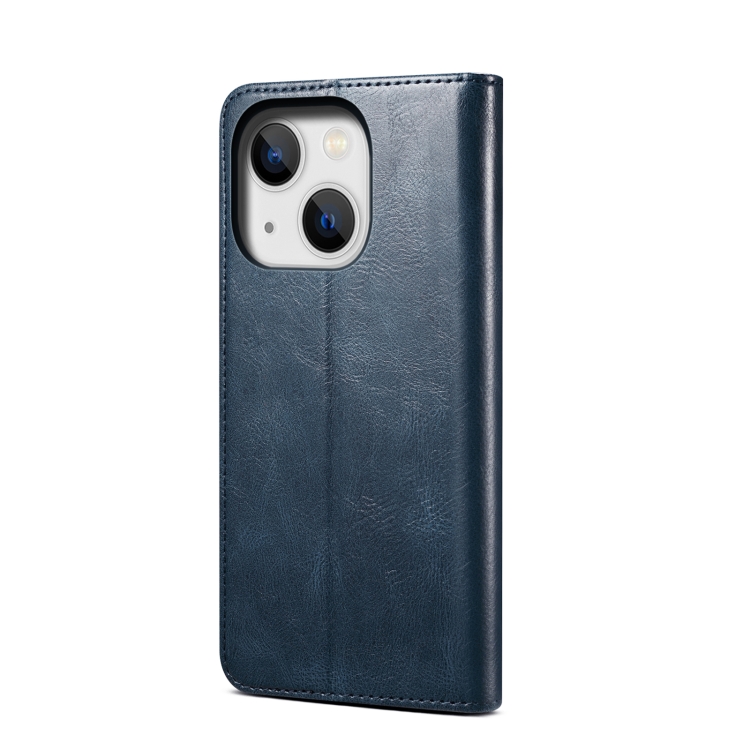 Funda de Cuero para iPhone 15 Oil Wax Crazy Horse Texture (Azul)