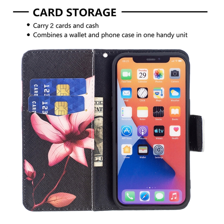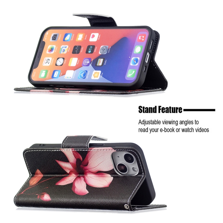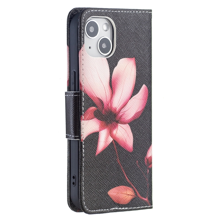 Funda Flip de Cuero para iPhone 15 Patrón de Dibujo Coloreado (Lotus)