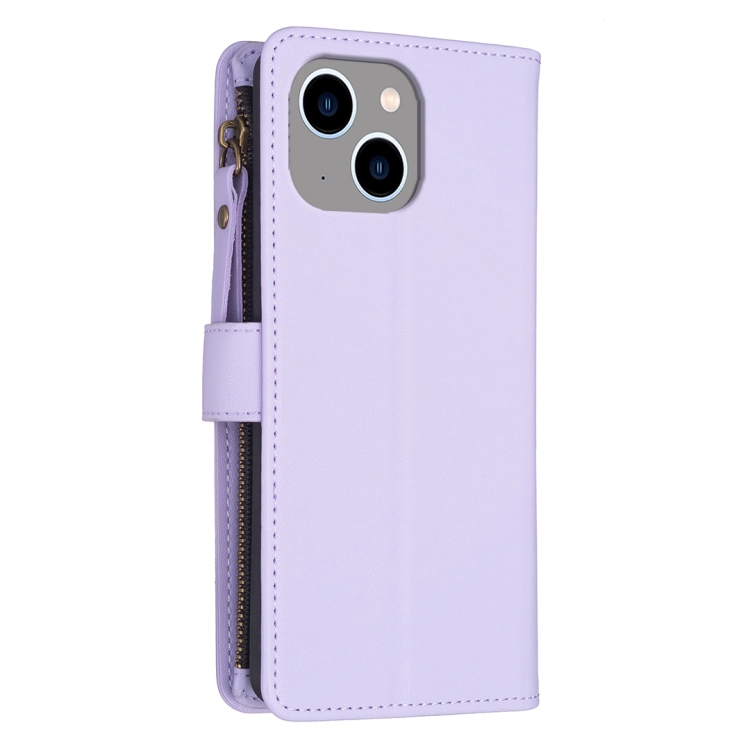 Funda Cartera para iPhone 15 Plus 9 Ranuras para Tarjetas Cremallera Cuero con Tapa (Morado Claro)