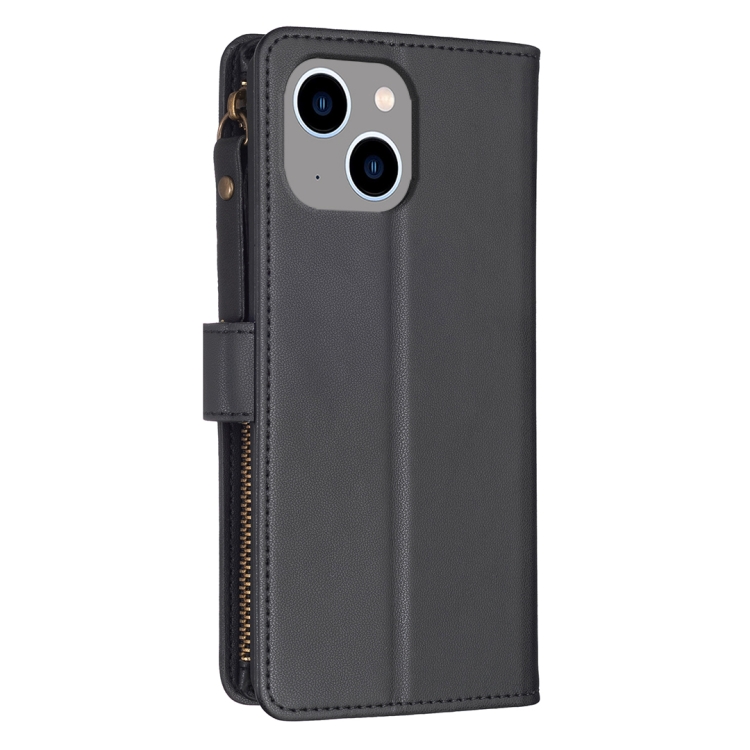 Funda Cartera para iPhone 15 Plus 9 Ranuras Tarjetas Cremallera Cuero con Tapa (Negro)