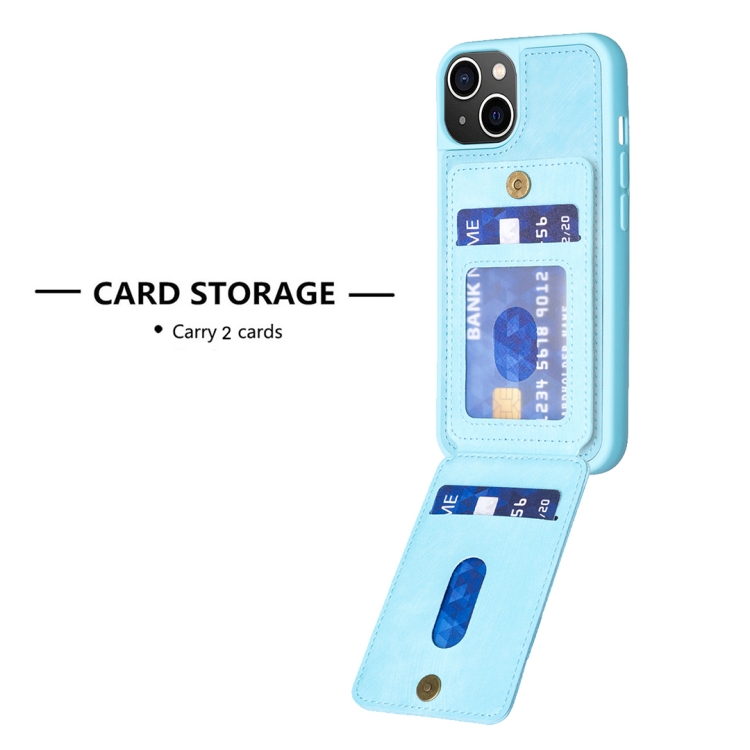 Estuche para Teléfono iPhone 15 Plus Bf28 con Bolsa para Tarjeta Esmerilada y Soporte (Azul)