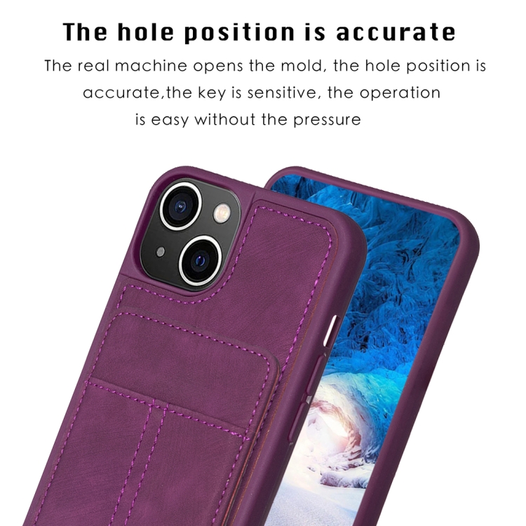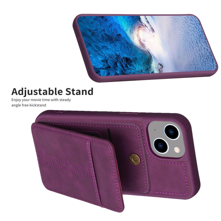 Estuche para Teléfono Bf28 para iPhone 15 Plus con Bolsa para Tarjeta Esmerilada y Soporte (Púrpura Oscuro)