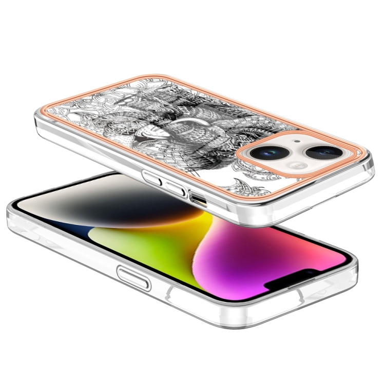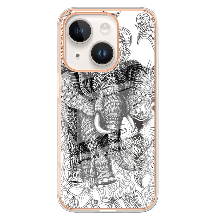 Caja de teléfono iPhone 15 Plus Imd doble cara Mármol Galvanoplastia (Totem Elephant)