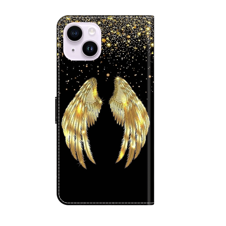 Funda Protectora de Cuero iPhone 15 Plus Crystal 3D a Prueba de Golpes (Alas Doradas)