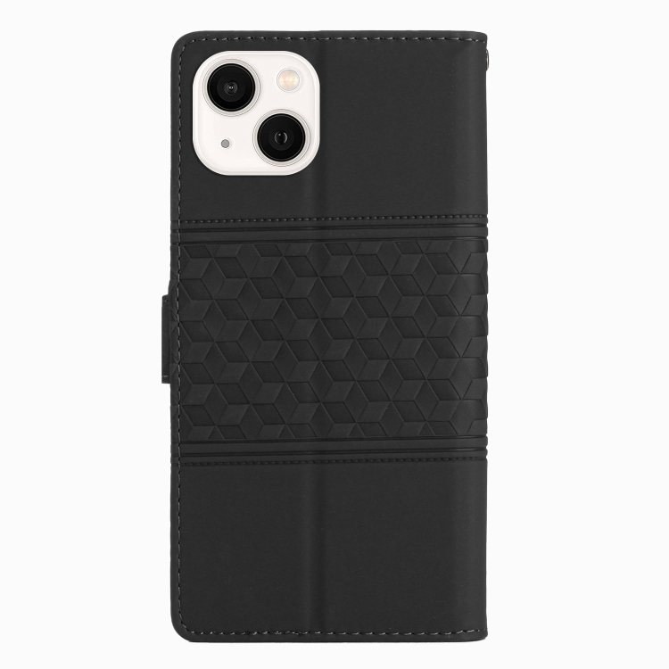 Funda para iPhone 15 Plus Diamond Embossed Skin Feel Leather Phone Case (Negro)