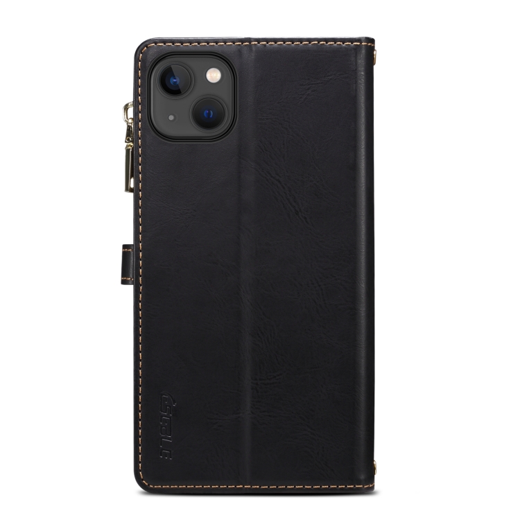 Funda para iPhone 15 Plus Eseble Star Series Lanyard Zipper Wallet Rfid de Cuero (Negro)
