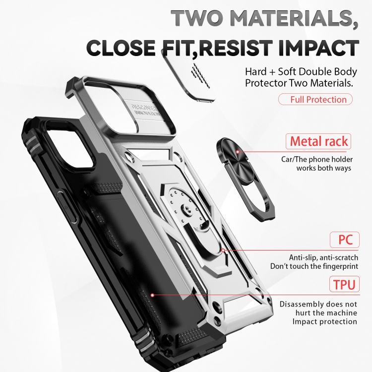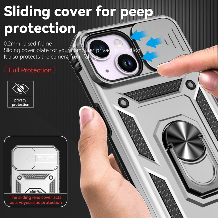 Estuche para Teléfono iPhone 15 Plus con Soporte Deslizante Camshield (Plata)