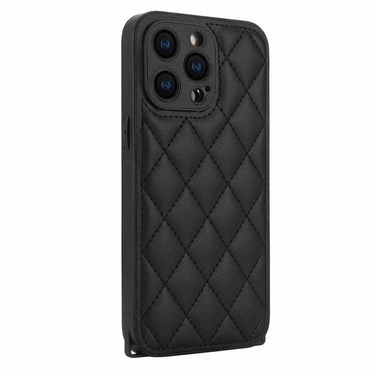 Estuche para Teléfono iPhone 15 Plus Textura Rómbica Cordón Doble (Negro)