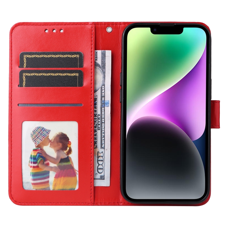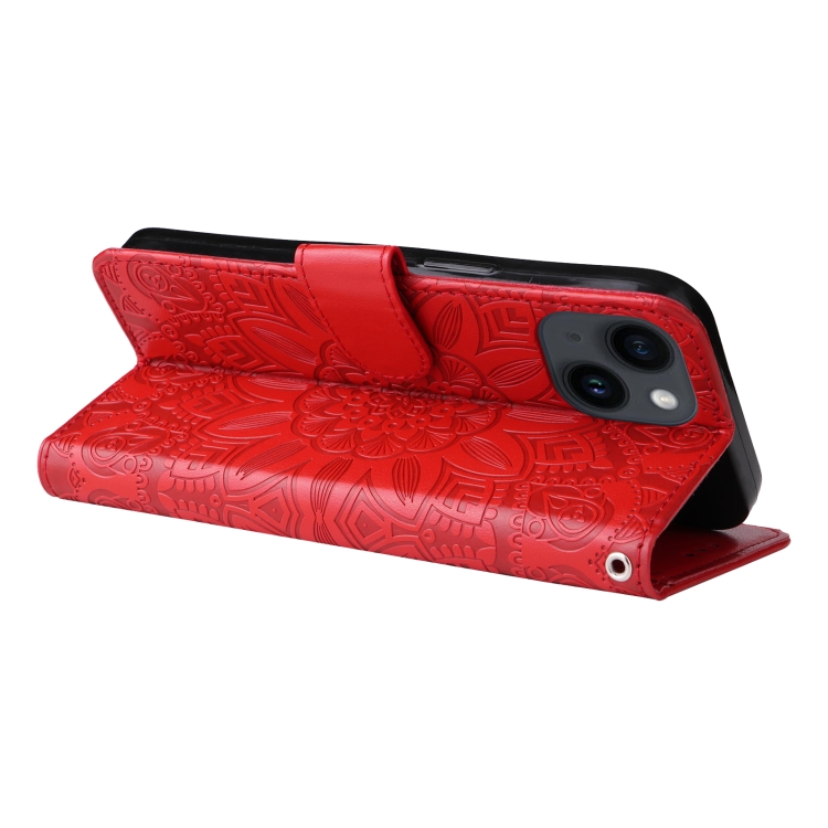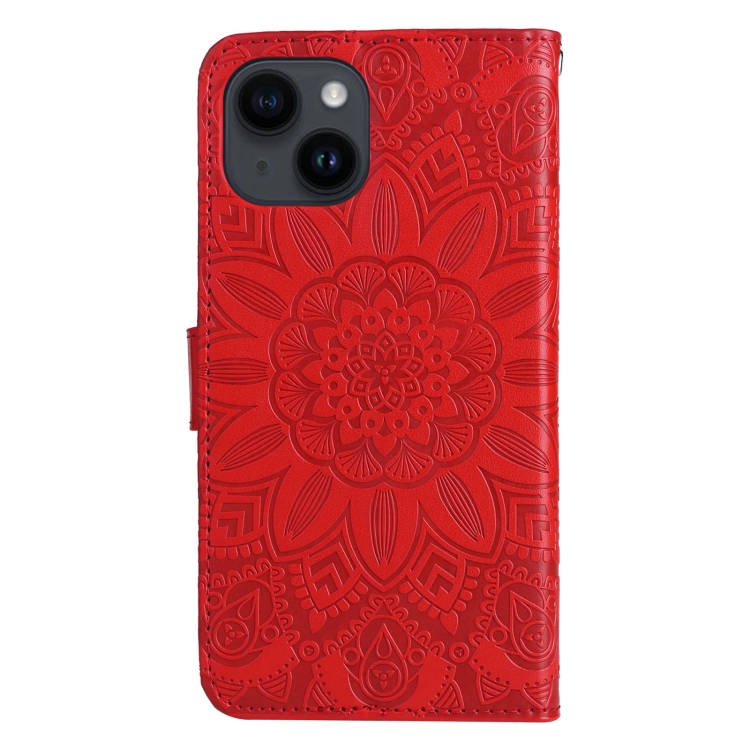 Estuche para Teléfono iPhone 15 Plus Cuero Estampado Girasol En Relieve (Rojo)