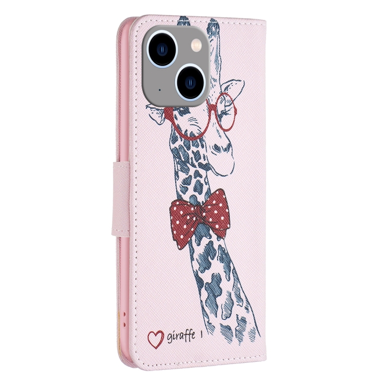 Estuche para teléfono iPhone 15 Plus Cuero patrón dibujo coloreado (Jirafa)