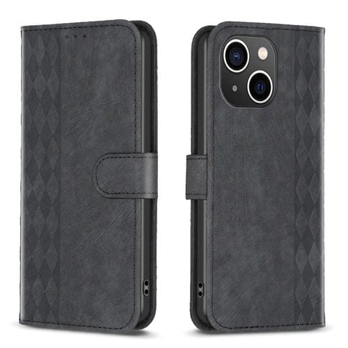 Estuche para Teléfono iPhone 15 Plus Cuero En Relieve a Cuadros (Negro)
