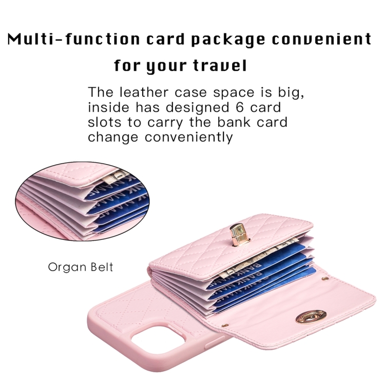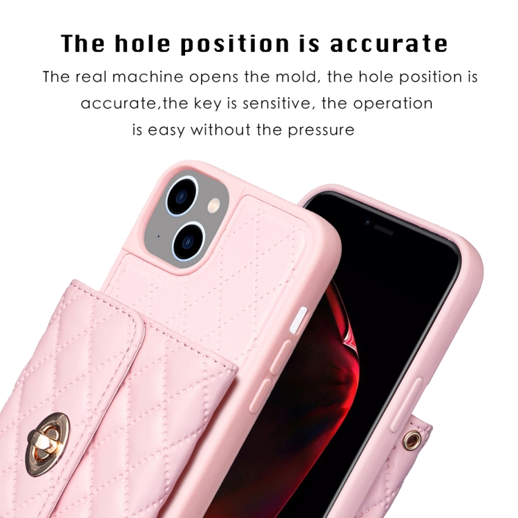 Estuche para Teléfono iPhone 15 Plus Cuero Rómbico con Billetera Horizontal (Rosa)