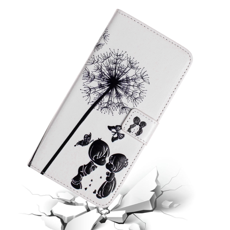 Funda de Cuero iPhone 15 Plus Dibujo 3D Relieve al Óleo (Pareja de Diente de León)
