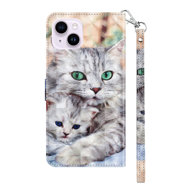 Funda para iPhone 15 Plus Cuero Pintada En 3D Dos Gatos Amorosos