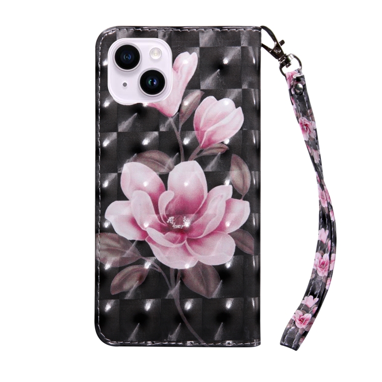 Funda de Cuero para iPhone 15 Plus Pintada en 3D Flor Rosa