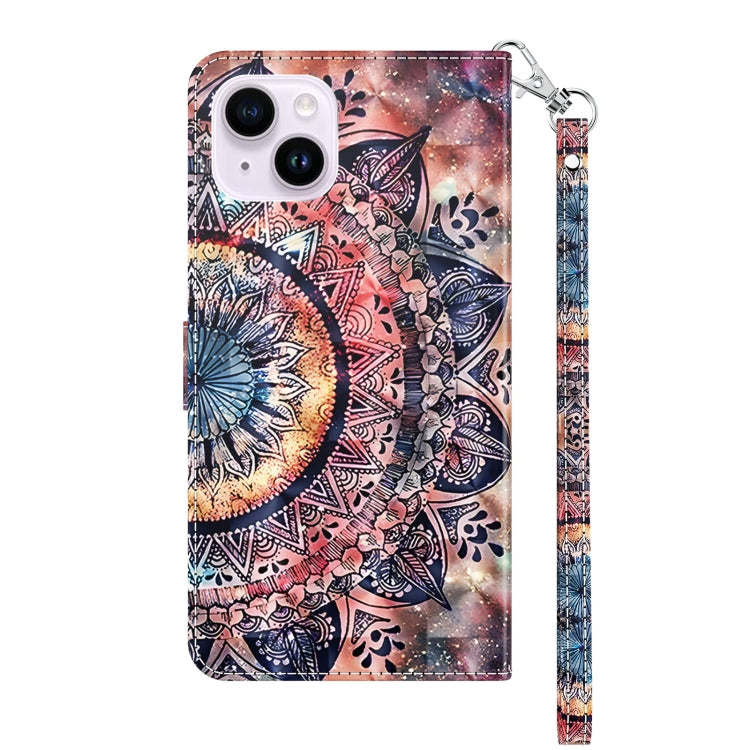 Funda de Cuero para iPhone 15 Plus Pintada en 3D Mandala Colorida