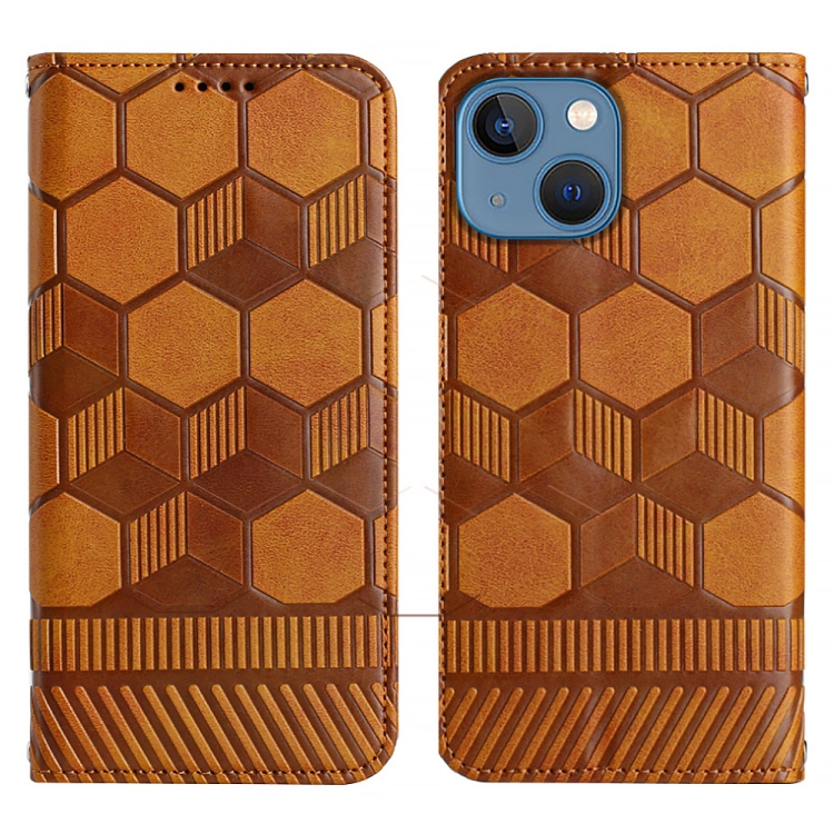 Funda de Teléfono iPhone 15 Plus Cuero Magnético Tapa Textura de Fútbol (Caqui)