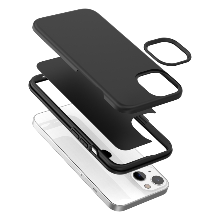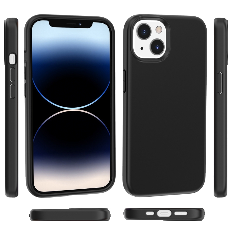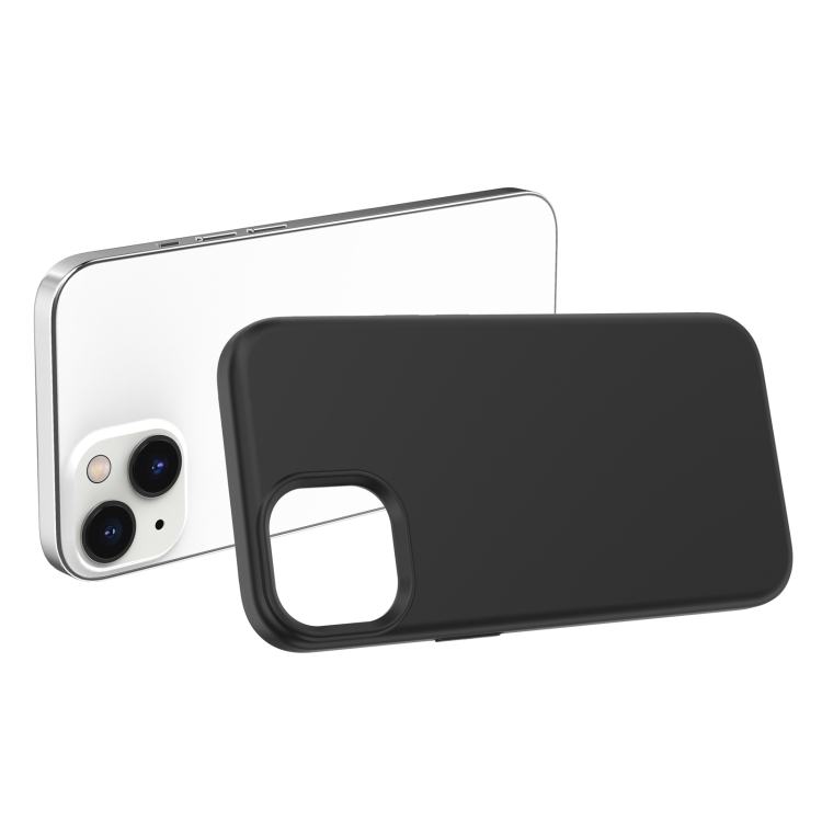 Funda de teléfono iPhone 15 Plus Color sólido con superficie de aceite de caucho (Negro)