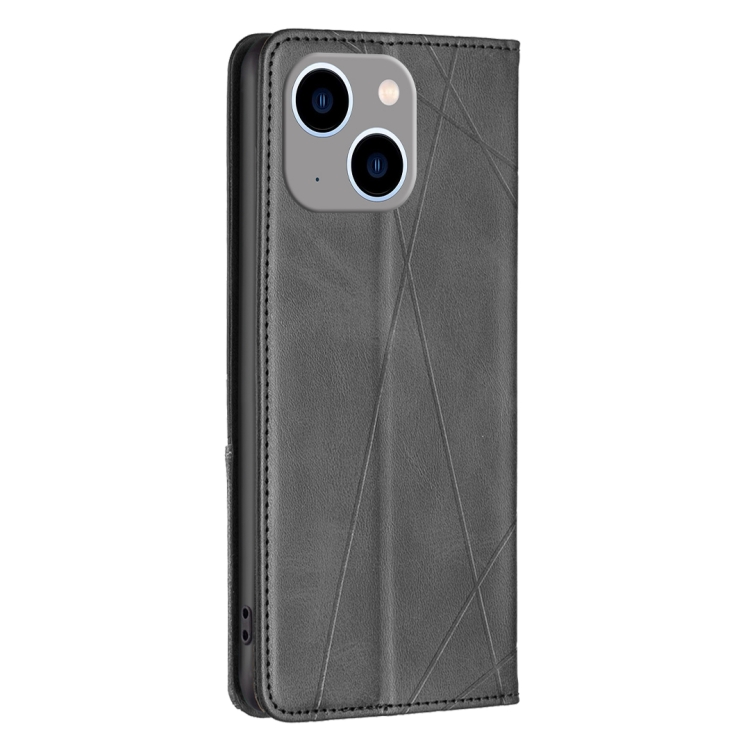 Funda de Teléfono iPhone 15 Plus Cuero Magnético Textura de Rombos (Negro)