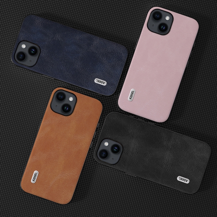 Funda de teléfono iPhone 15 Plus Abeel PU textura piel de vaca (Azul)