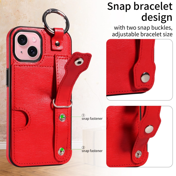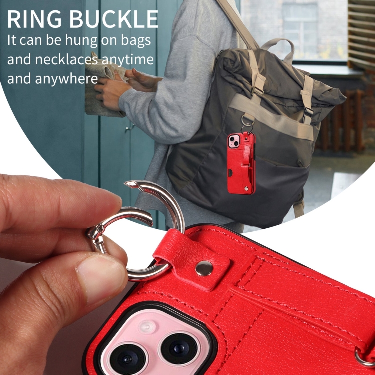 Funda para Teléfono iPhone 15 Plus con Anillo y Ranura para Tarjeta Textura de Pantorrilla (Rojo)
