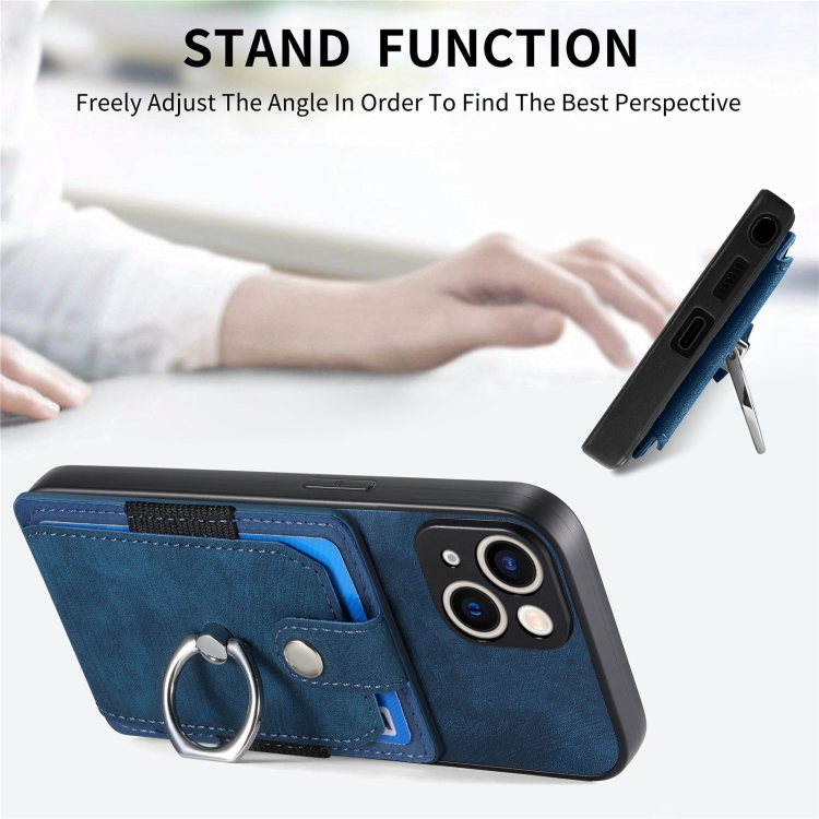 Funda para Teléfono iPhone 15 Plus con Billetera y Tarjeta con Anillo con Sensación de Piel Retro (Azul)