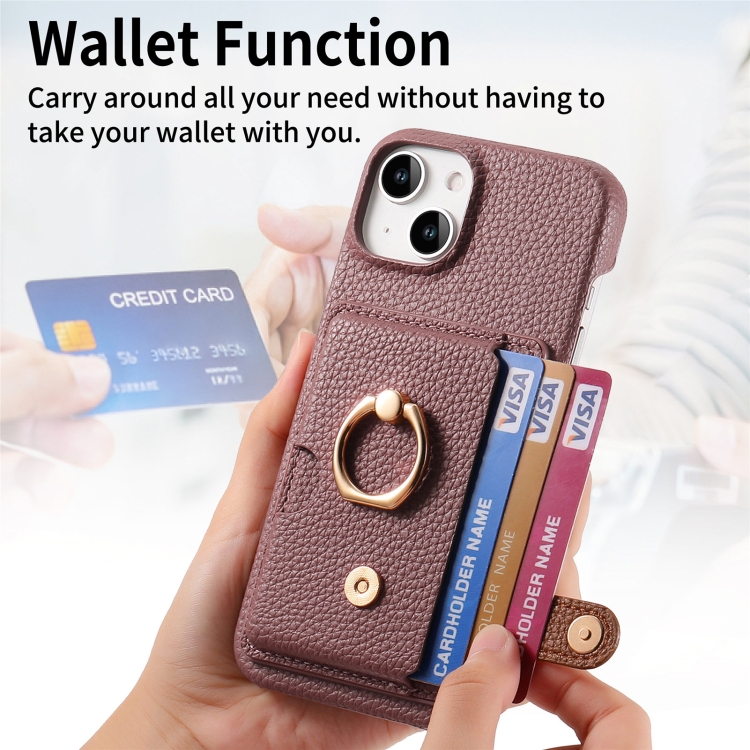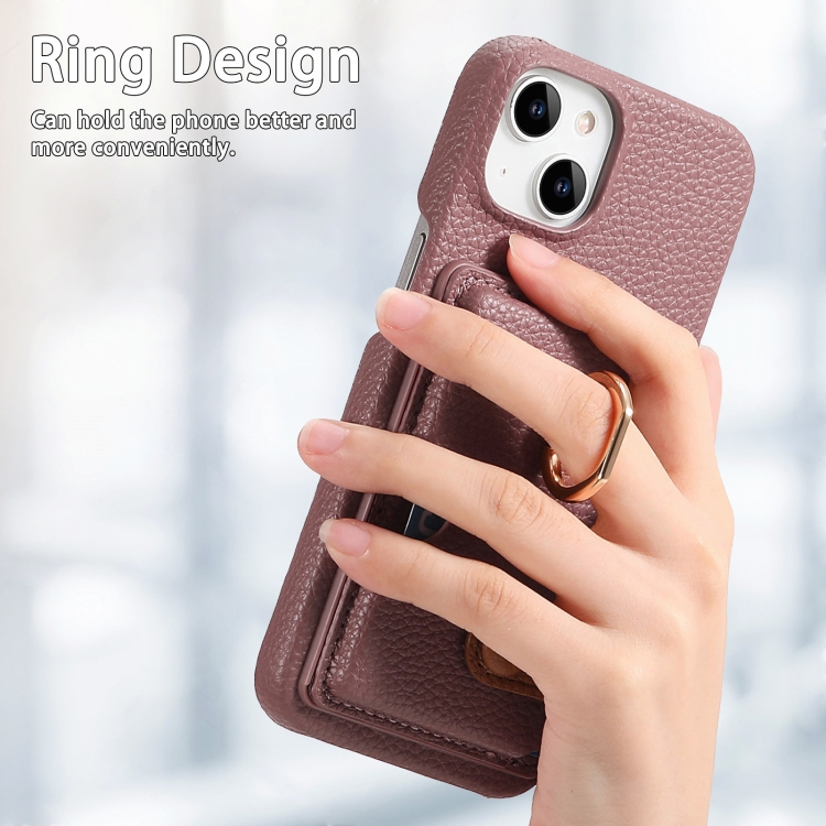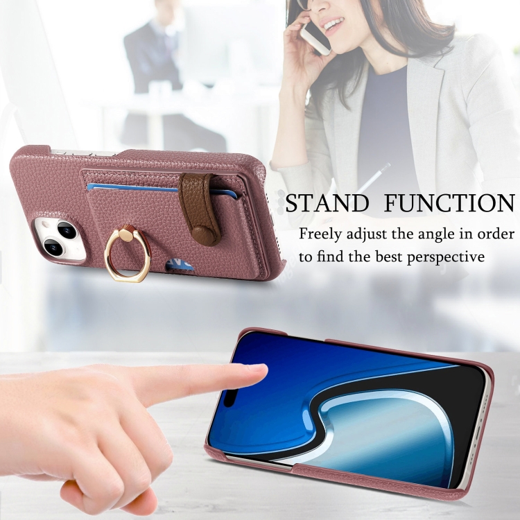 Funda para Teléfono iPhone 15 Plus Borde de Aceite Cuero Litchi Parte Posterior Tarjeta (Albaricoque Azufaifo)