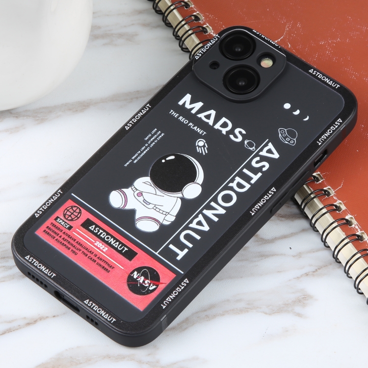 Funda para Teléfono iPhone 15 Plus Silicona Borde Recto Patrón Astronauta (Negro)
