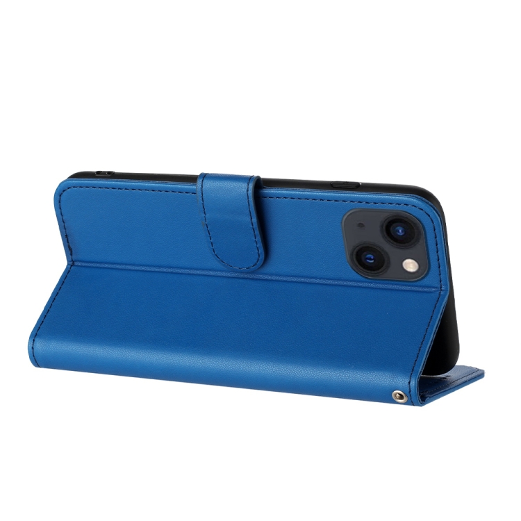 Funda para Teléfono iPhone 15 Plus Cuero con Tapa En Relieve y Flor Datura (Azul)