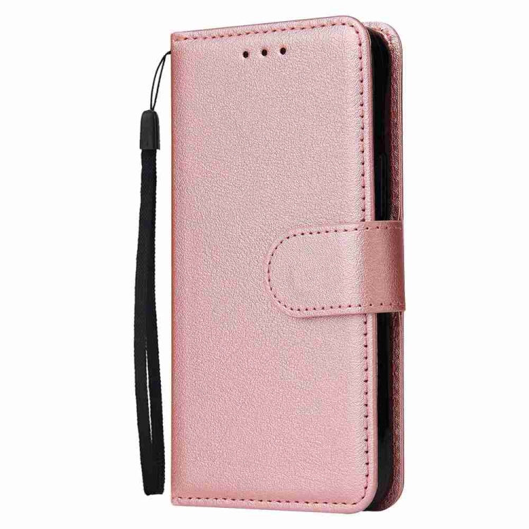 Funda para Teléfono iPhone 15 Plus Cuero Tapa Horizontal Multifuncional Tres Ranuras (Oro Rosa)