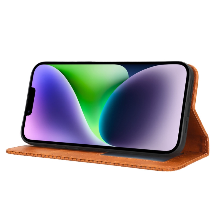 Funda para Teléfono iPhone 15 Plus Cuero Textura Retro Hebilla Magnética (Marrón)